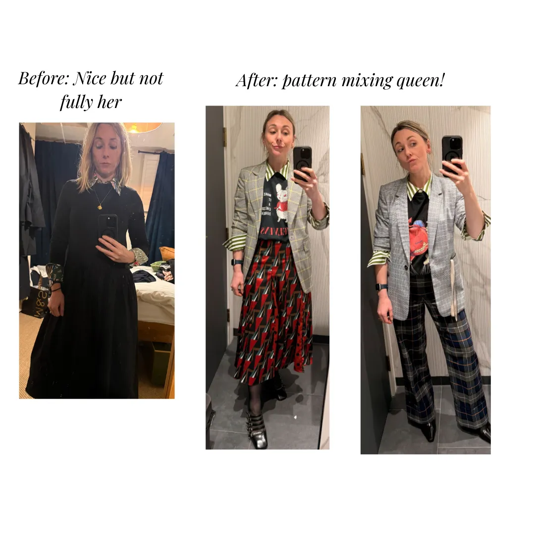 Through our sessions, I had a realisation about how much I loved patterns, and that I could be edgy without being head-to-toe black. That was honestly startling. I found myself making bolder choices, experimenting more and learning to play with clothes again.